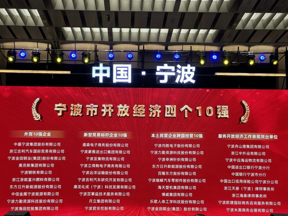• 喜訊:寧波海田控股集團榮獲寧波市外貿10強企業(yè)